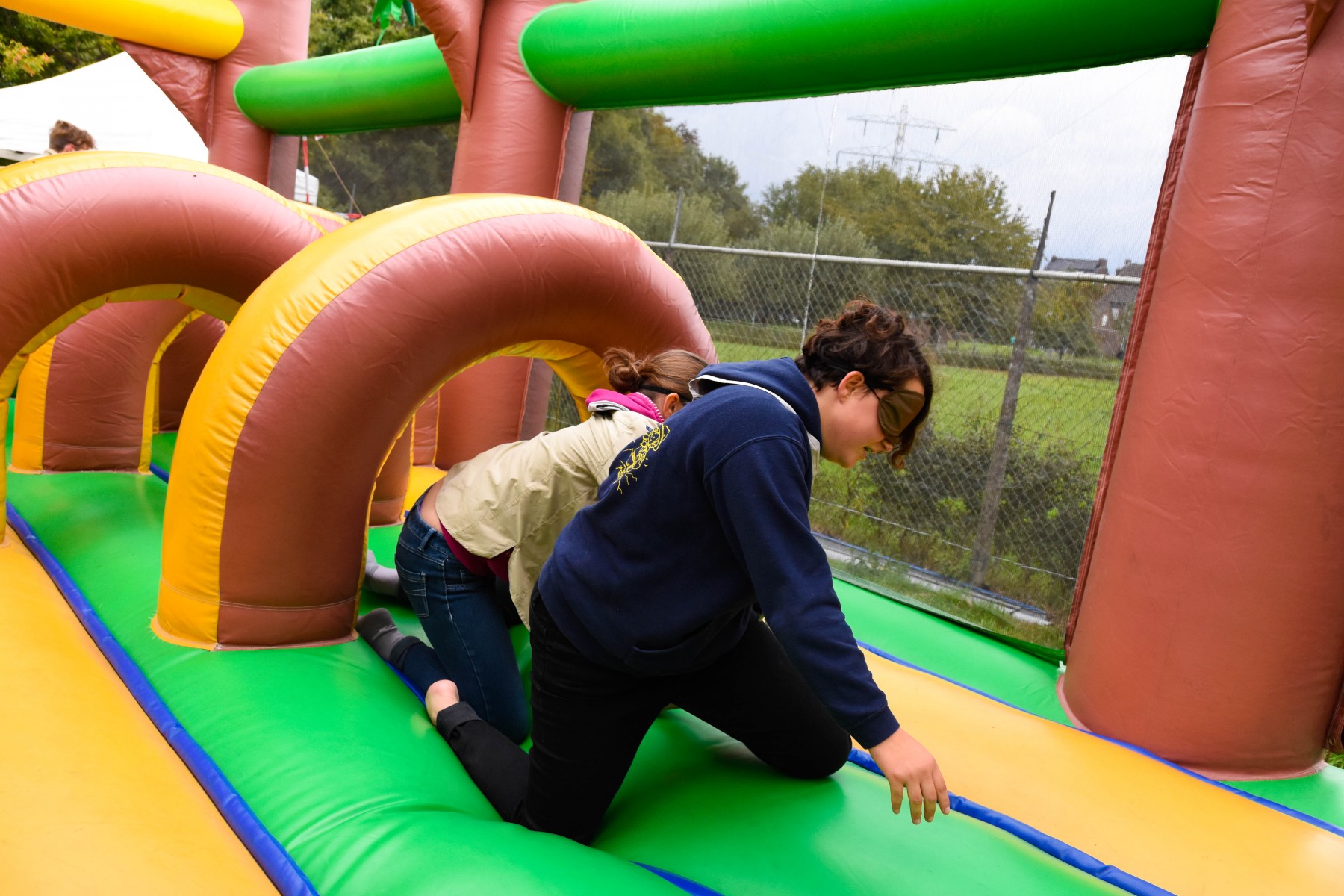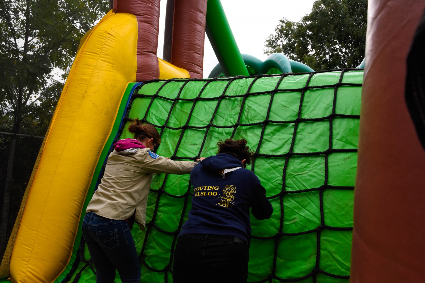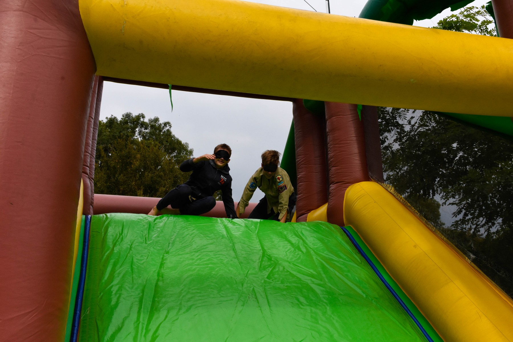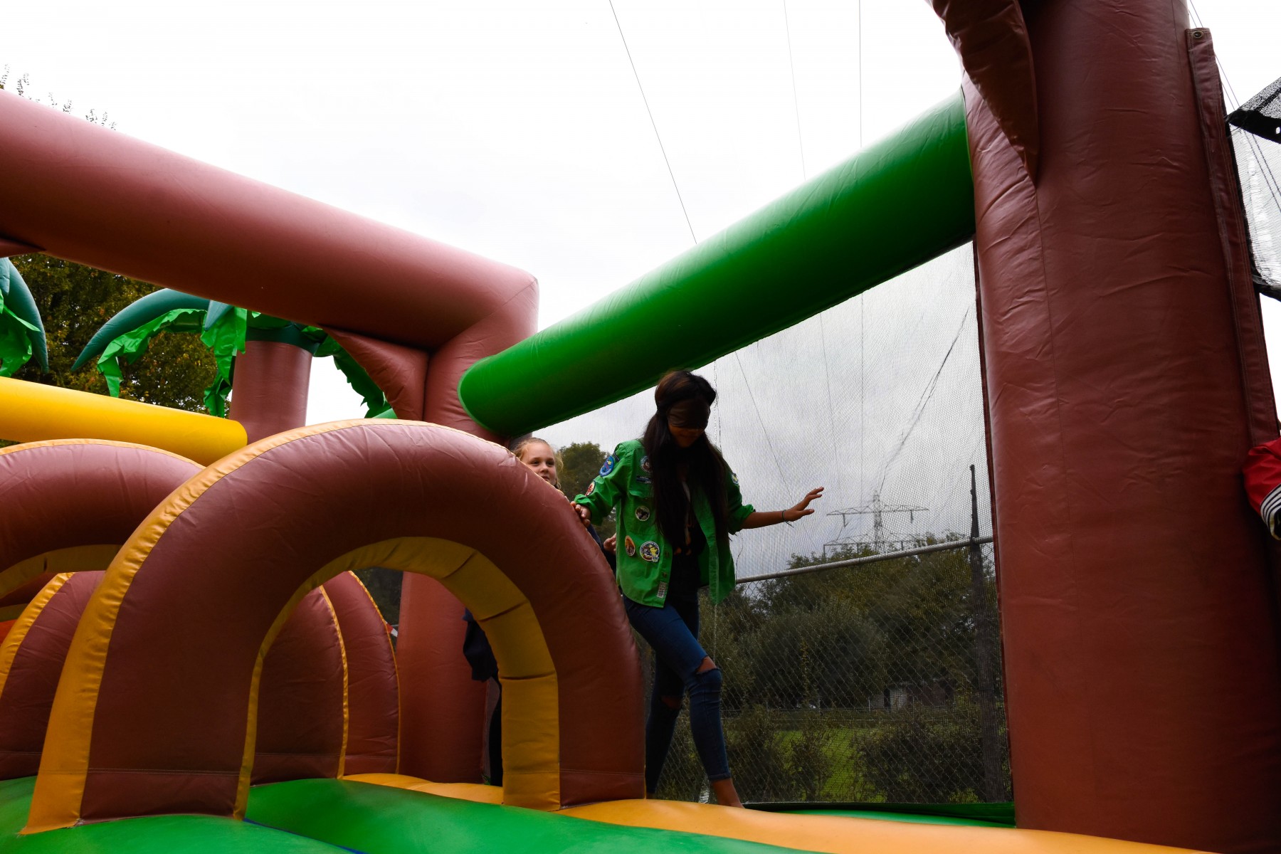 Alle overvliegers volgden een hindernissenbaan. Ieder speltak deed dat op zijn eigen manier. Natuurlijk werd de moeilijkheidsgraad van de manier waarop ze het parcours moesten volgen steeds moeilijker!