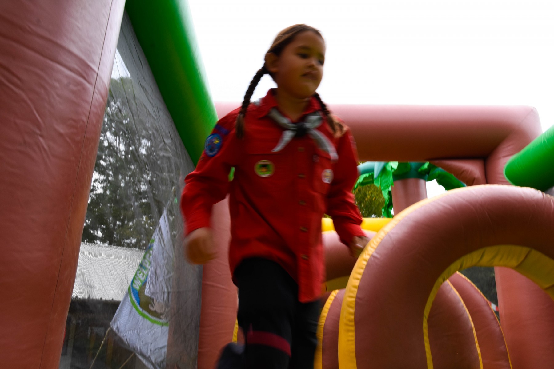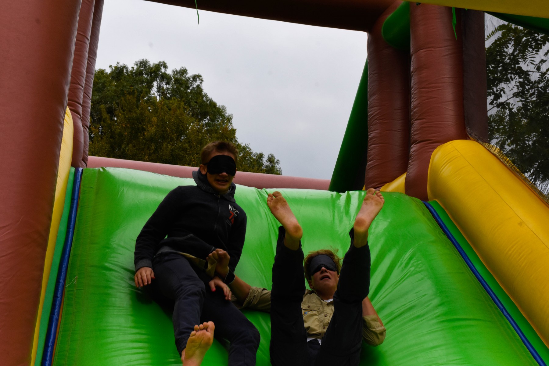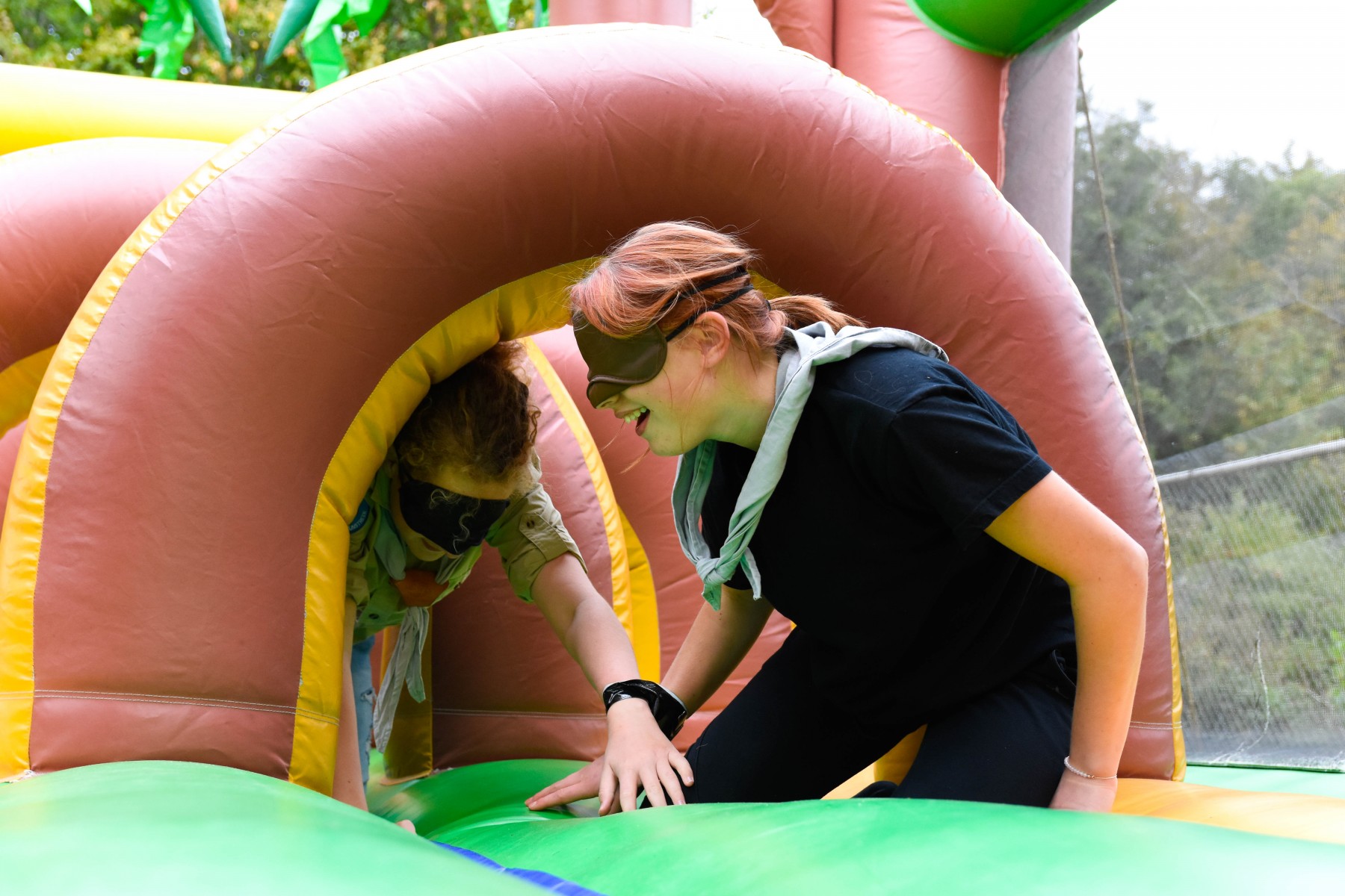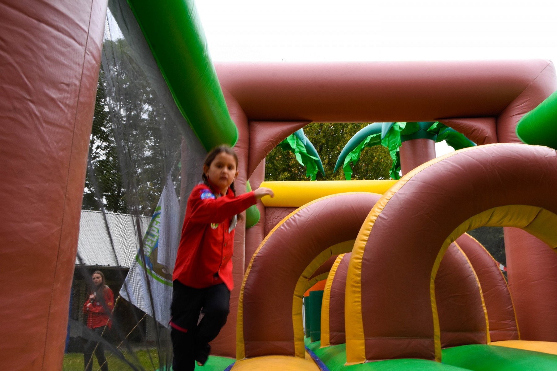 Alle overvliegers volgden een hindernissenbaan. Ieder speltak deed dat op zijn eigen manier. Natuurlijk werd de moeilijkheidsgraad van de manier waarop ze het parcours moesten volgen steeds moeilijker!